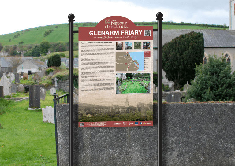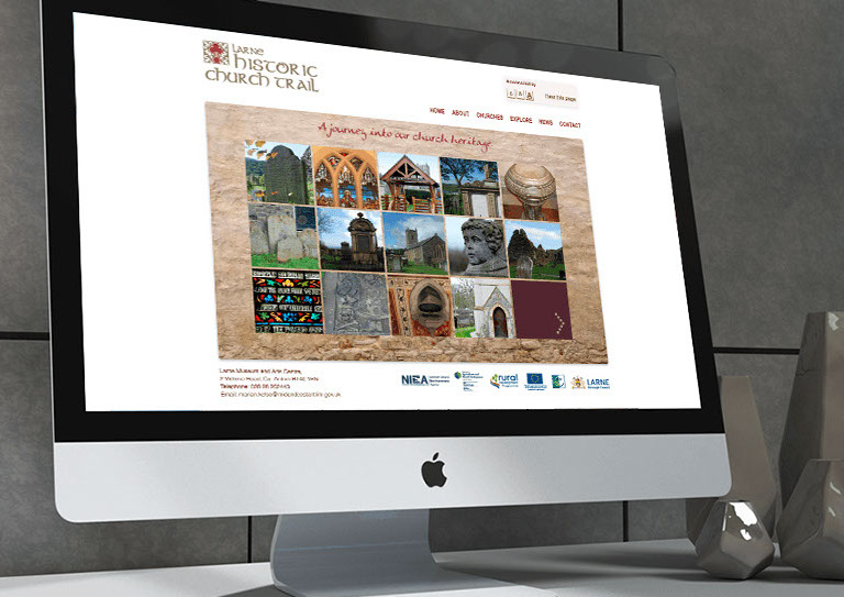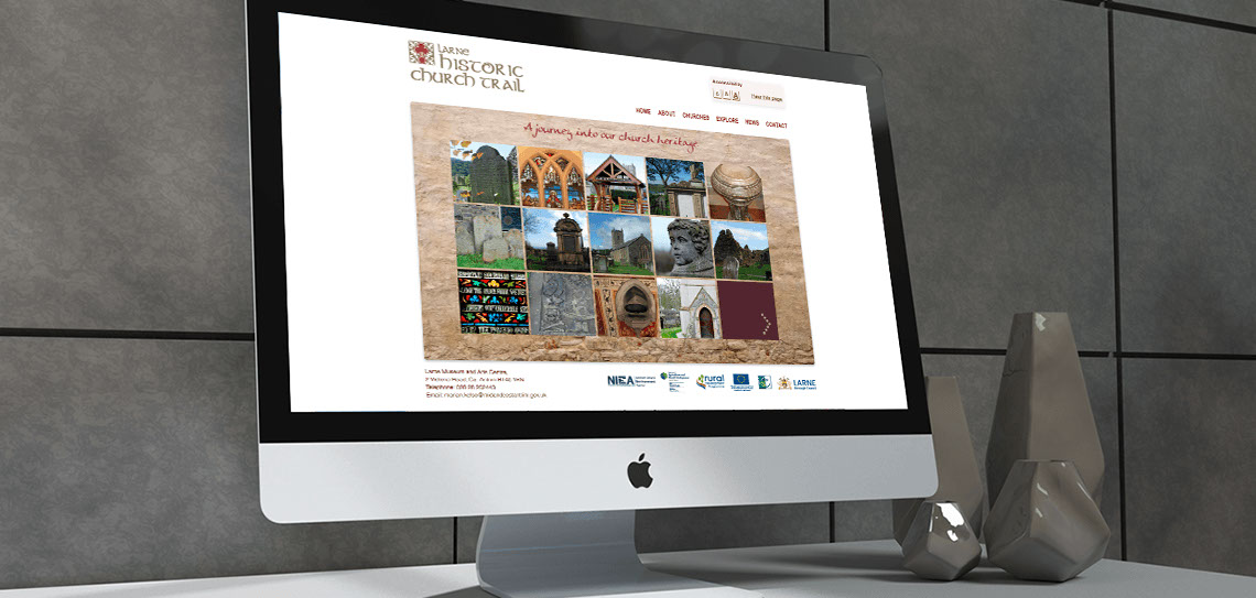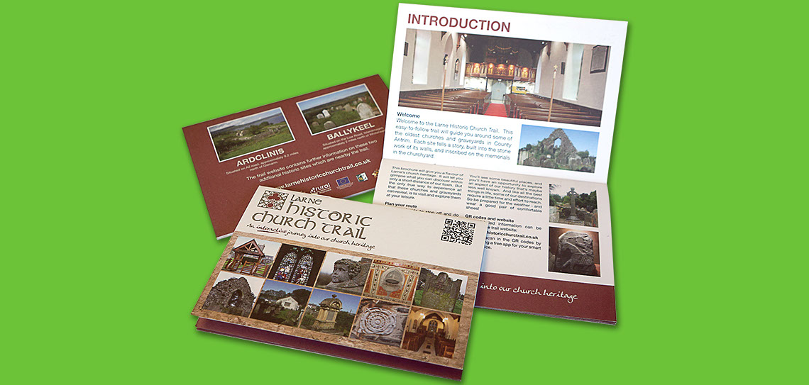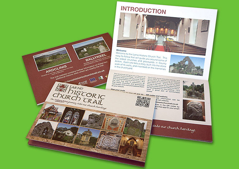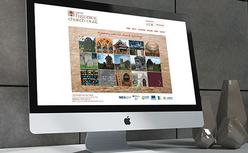 We created dynamic branding that could be applied across a website, printed materials, signage and in advertising for Larne Historical Church Trail. We visited each site on the trail to take pictures and get a sense of what the project was about. This helped us to form a logotype and develop the branding more organically rather than just sitting in our office. This hands on approach really paid dividends when designing literature and creating maps because we could empathise with trail users. As you can see the branding came out great and has a unique character that makes it stand out.